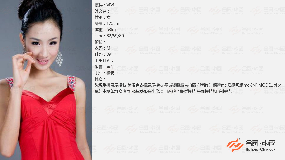 合風(fēng)禮儀模特經(jīng)紀(jì)公司致力于為各大企業(yè)和廣告公司、攝影公司提供最合適的優(yōu)質(zhì)模特及相關(guān)活動(dòng)嘉賓。服務(wù)的行業(yè)有(影視業(yè)、服裝、日化、衛(wèi)浴、地產(chǎn)、櫥柜、電器、食品、太陽能、飾品、飲料、藥品、天貓、淘寶、環(huán)保產(chǎn)業(yè))等。公司擁有眾多國內(nèi)外專業(yè)模特及其他演藝資源。擁有歷屆如“香港小姐”、“世界小姐”、“亞洲小姐”、“新絲路模特”、“中國好聲音”、“星光大道”、“夢(mèng)想中國”、“超級(jí)女聲”、“快樂男生”、“明星模仿秀”等全國各類選美大賽的選手資料。公司與國內(nèi)外眾多知名企業(yè)、娛樂經(jīng)紀(jì)公司、知名廣告公司、影視制作公司等有著良好的合作關(guān)系,提供超越客戶期望的服務(wù),做客戶永遠(yuǎn)的伙伴。