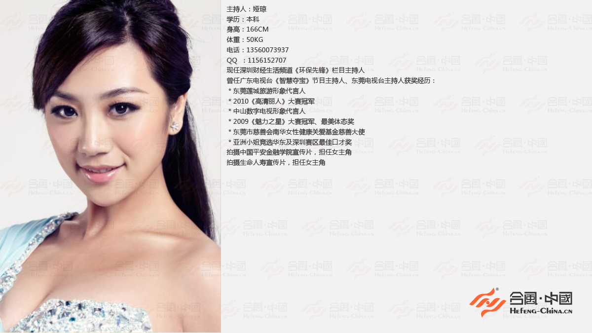 曾任廣東電視臺《智慧奪寶》節(jié)目主持人、東莞電視臺主持人